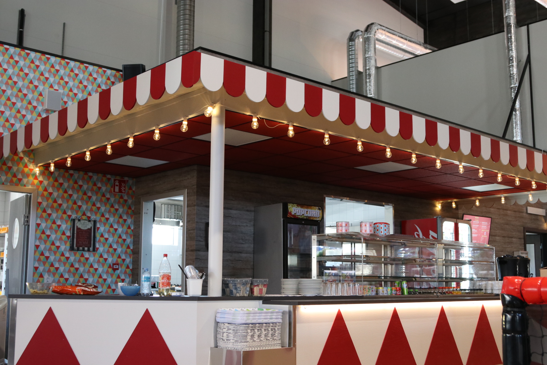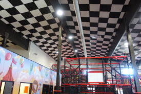 Vi har monterat undertak och väggabsorbenter i en skolmatsal som helrenoverades. För att ljudmiljön ska bli bra i en skolmatsal så kompletterar vi med väggabsorbenter till undertaket. I undertaket har det monterats belysning med ledpaneler som är anpassade till undertaket.