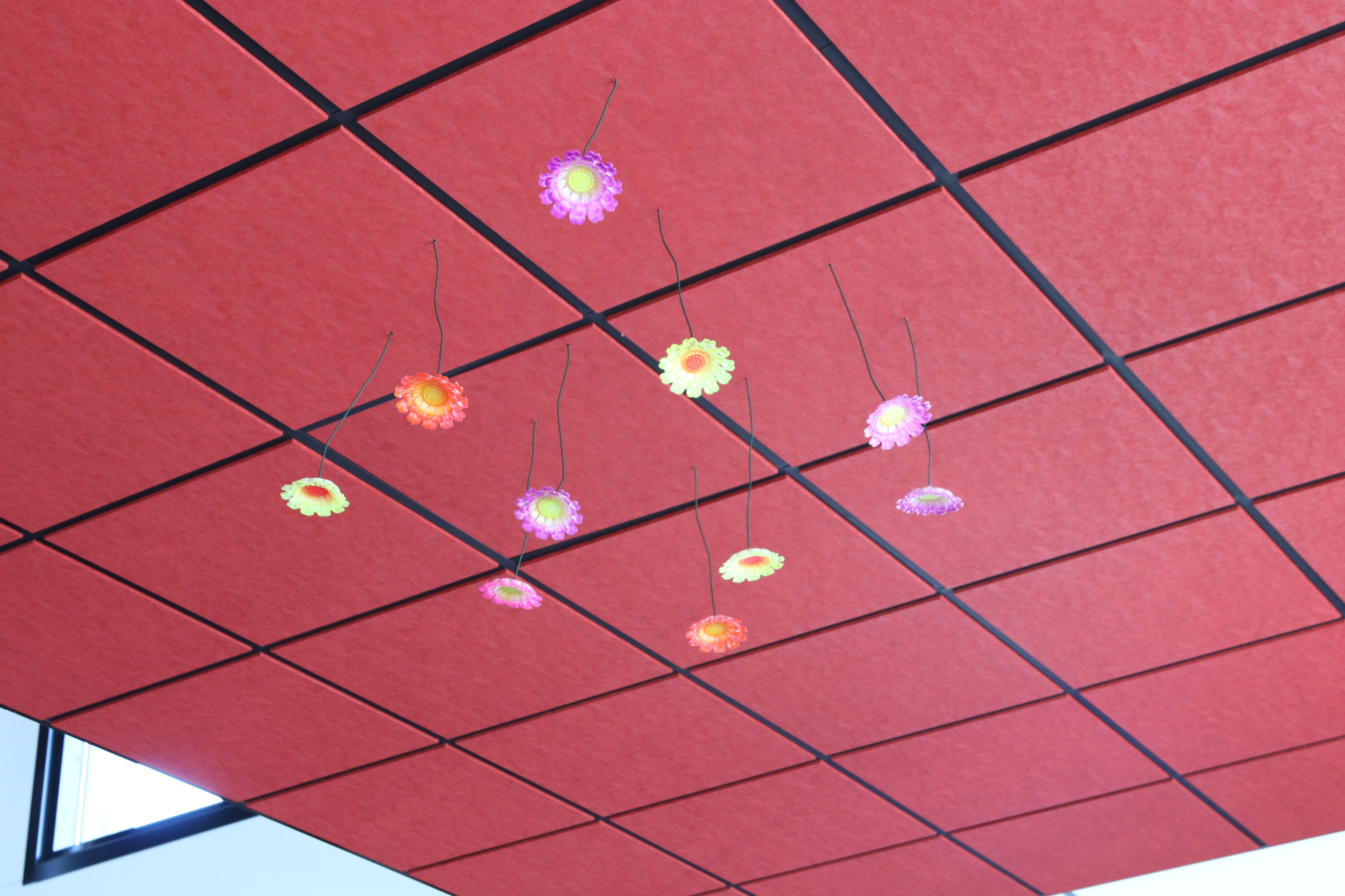 Väggabsorbenterna monterades med byglar som blivit lackade i likadan färg som tygytskiktet på absorbenterna.